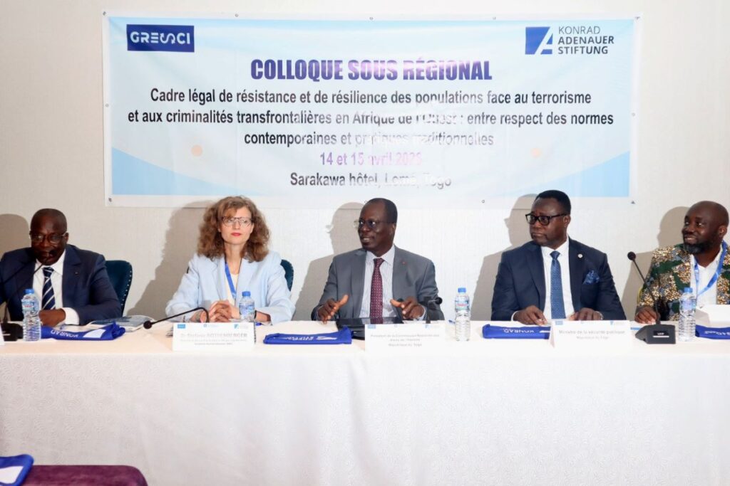 Le quatrième colloque régional sur le thème « Cadre légal de résistance et de résilience des populations face au terrorisme et aux criminalités transfrontalières en Afrique de l’Ouest » a été lancé ce mardi à l’hôtel Sarakawa de Lomé, au Togo. Organisé par la Fondation Konrad Adenauer (KAS) et le Groupe de recherche des stratégistes de Côte d’Ivoire (GRESCI), cet événement de deux jours réunit chercheurs, responsables institutionnels, élus locaux, chefs traditionnels et acteurs de la société civile.